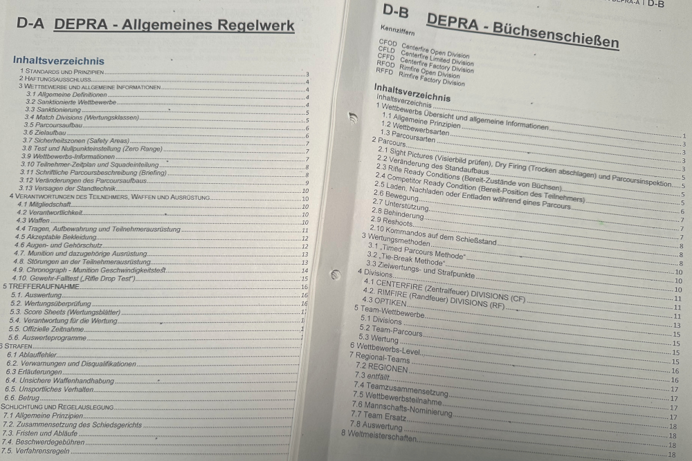 Also, aus den ‚IPRF General Rules‘ entstand das Dokument ‚DEPRA-General-Rules‘, das Dokument ‚IPRF Precision Rifle Rules‘ mündete in dem Werk ‚DEPRA-Precision-Rifle-Rules‘ und aus dem Dokument ‚IPRF Qualification‘ entstanden die ‚DEPRA Qualifikation‘. Das Dokument ‚DEPRA Qualifikation‘ wurde dann als erstes Werk rechtzeitig für die Qualifikation für die WM 2024 in den USA genehmigt und bereitgestellt.
